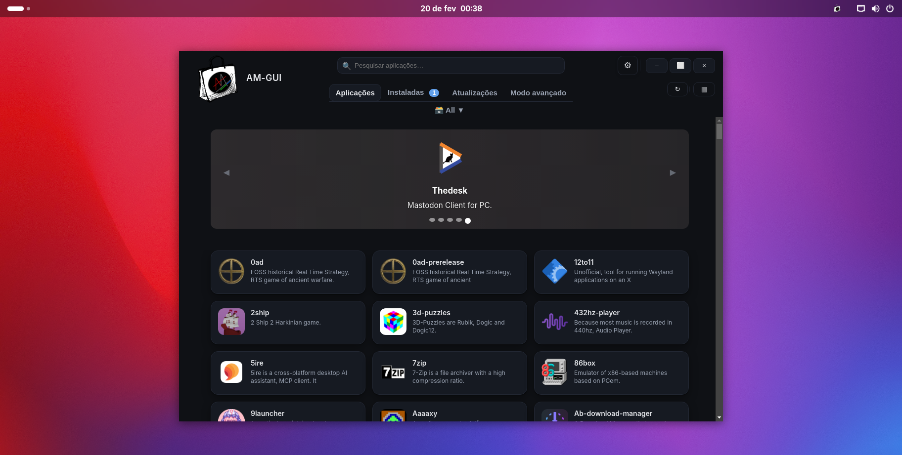 - Loja de aplicativos AM-GUI, para AppImages e binários diretos.