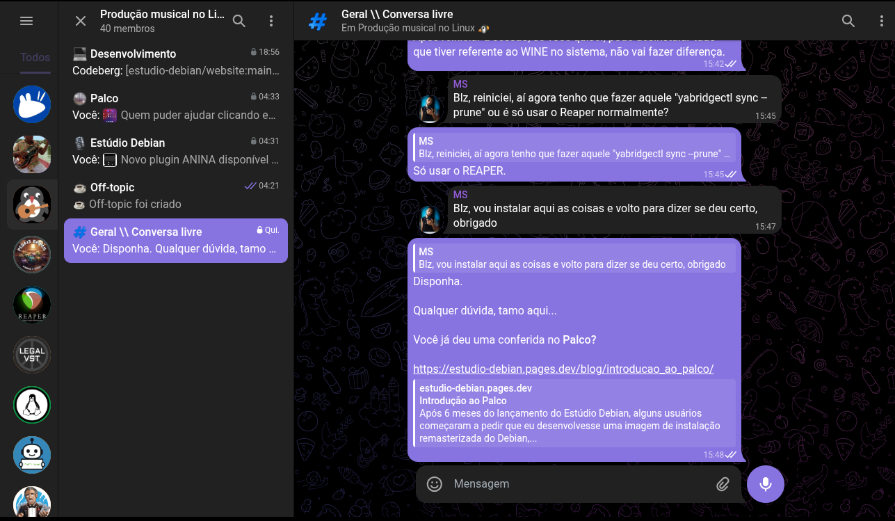 A melhor forma de executar qualquer tipo de tarefa quando se está em dúvidas, é perguntar, pra isso, a comunidade do Palco está disponível no Telegram, basta acessar o link da comunidade.